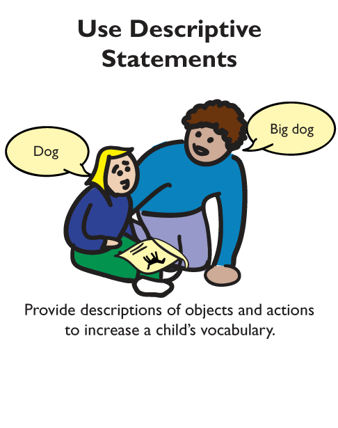 The posters are intended to remind adults of ways to promote children’s communication through everyday activities. These reminders help people to use the same strategies until the strategies become familiar. Don’t let the posters overwhelm you. Start by posting the ones that you feel are most important to your child or are part of your child’s individual program plan. Add other posters when you think you are ready to try a few more. Move the posters to another area if you feel that they will be more helpful somewhere else.
